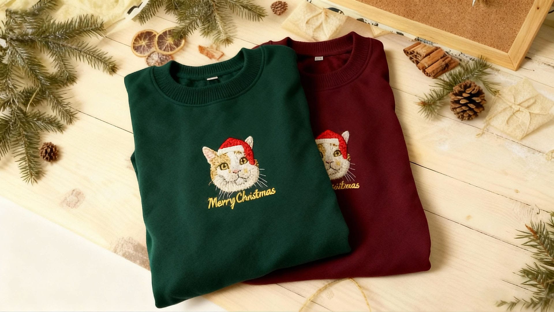 Turn your pet’s photo into cozy holiday embroidery! The perfect personalized Christmas gift for dog and cat lovers.